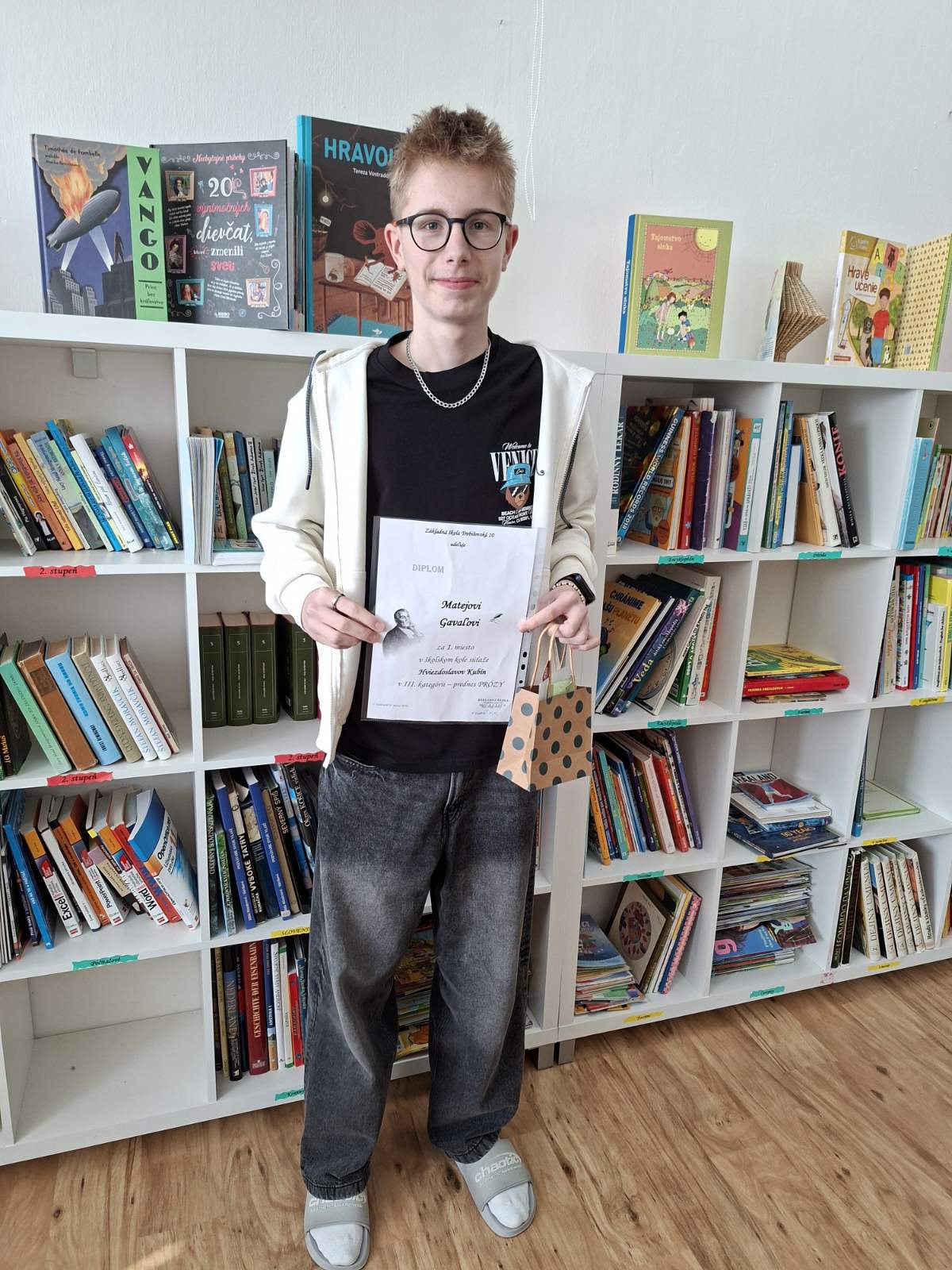 Čestné uznanie v III. kategórii prednes prózy – Matej Gavaľa (9. C),